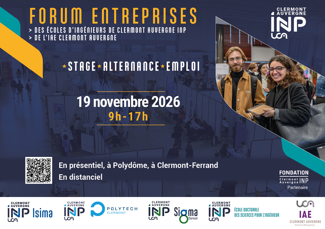 The 2026 Career & Industry Forum will take place on Thursday, November 19, 2026 at the Polydôme Congress Center in Clermont-Ferrand.