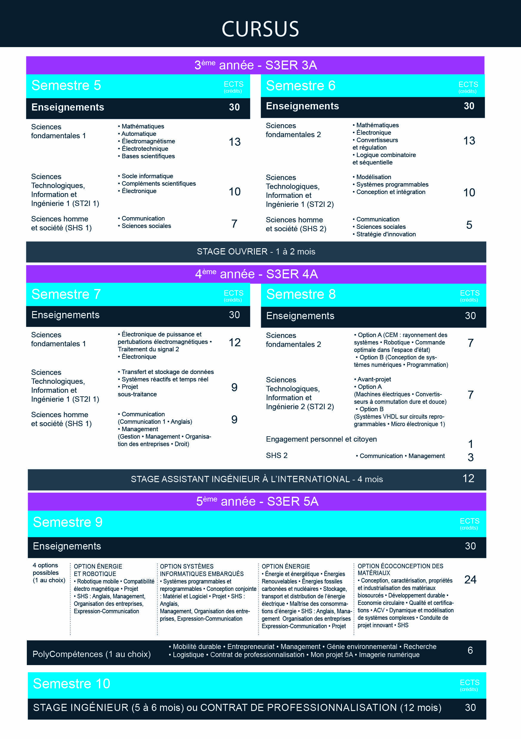 • La première année comprend les bases fondamentales en génie électrique / électronique et le Tronc Commun (enseignement commun à toutes les spécialités de l’école).